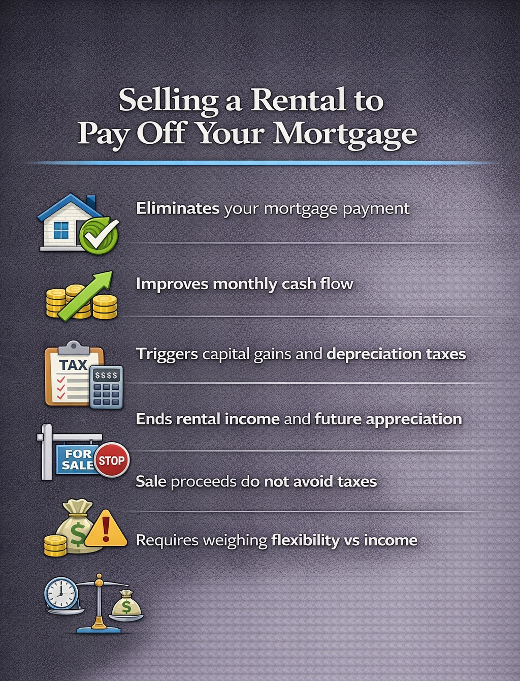 Using rental sale proceeds to pay off your mortgage may be a good fit if you are nearing retirement, value simplicity, or want to reduce required withdrawals. It can also make sense if your mortgage rate is high or the rental causes ongoing stress.